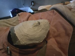 石膏パックを塗っていきます★
