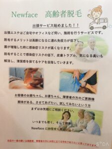 高齢者脱毛、介護脱毛スタート!! ニューフェイス岐阜 出張喜んで伺います!